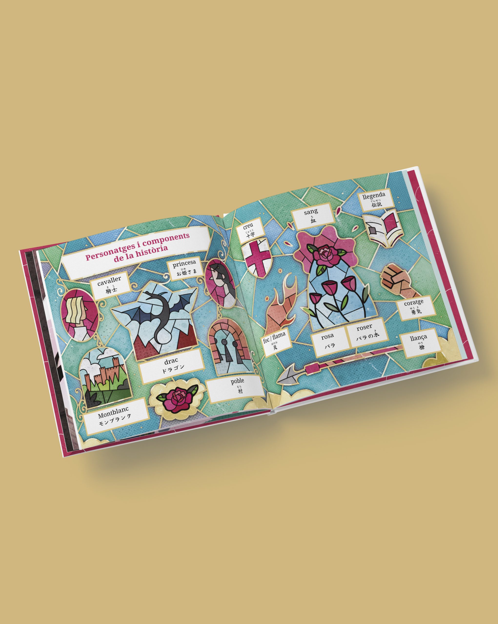 Al llarg de les pàgines hi trobaràs també vocabulari per aprendre japonès, curiositats sobre la llegenda i petites explicacions culturals, com el significat dels dracs en la tradició japonesa.